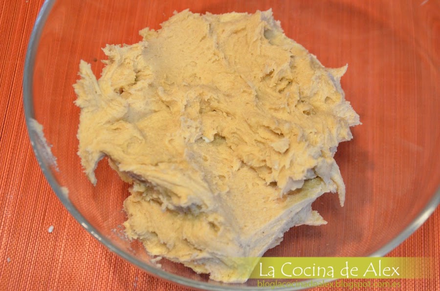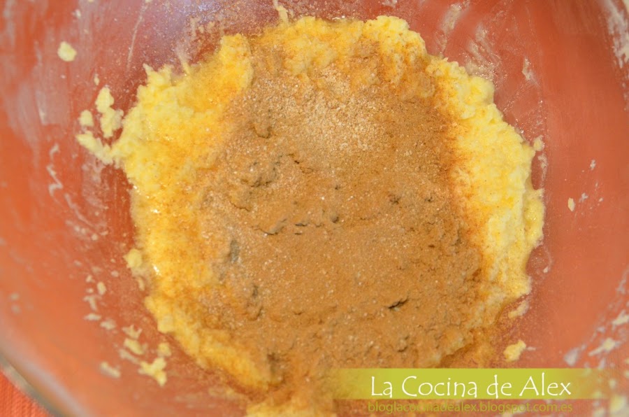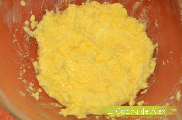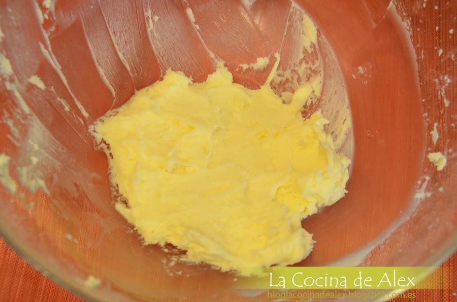 En primer lugar lo que tenemos que hacer es pomar (ablandar la mantequilla) a temperatura ambiente. Ponemos en un bol la mantequilla con el azúcar glas y removemos hasta obtener una masa homogénea con todo incorporado.