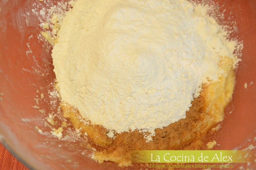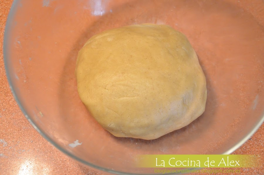 Incorporar a la masa el jengibre, la canela, la sal y 200gr de harina. Mezclar y separar la masa en dos partes iguales en dos boles.
