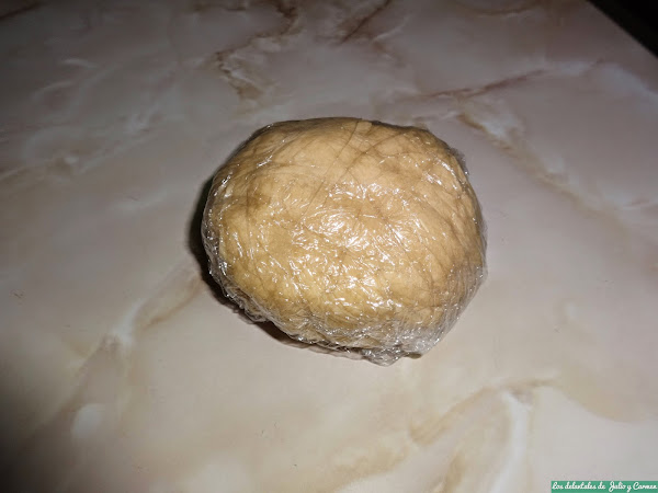 Cuando obtengamos una masa que no se nos pegue a los dedos, y en la que todos los ingredientes estén bien integrados, pondremos la bola de masa envuelta en papel transparente y lo dejaremos reposar en la nevera, mínimo 30 minutos.