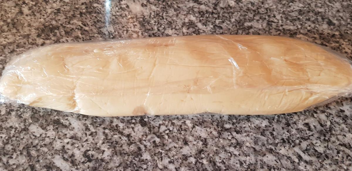 A la nevera Envolvemos la masa en papel film, y la metemos en la nevera, como mínimo una hora, o hasta que veas que ha endurecido.