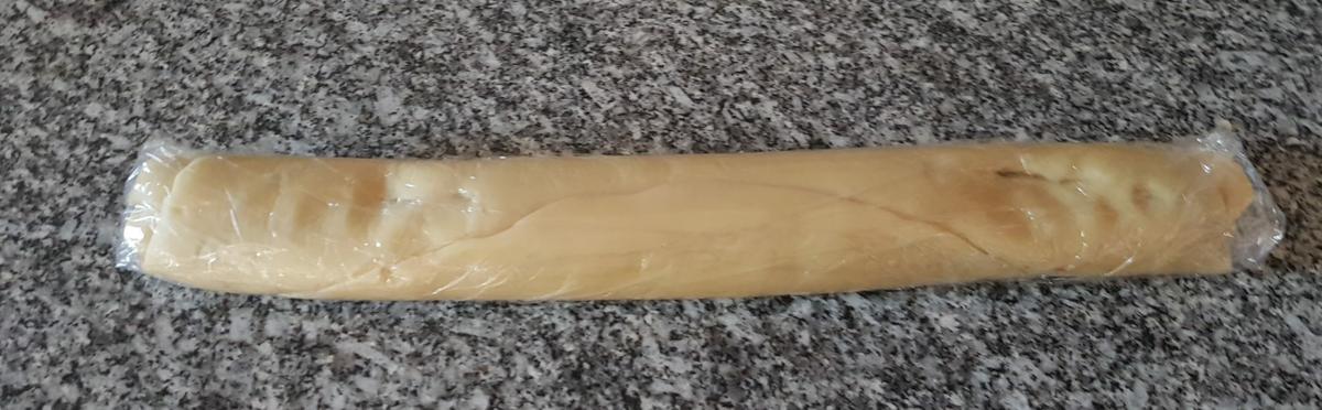 Al horno Sacar del frigorífico, quitarle el papel film, y cortar porciones de unos 2 cm de ancho y ponerlas sobre la bandeja de horno, a la que le habremos puesto papel de horno. Introducir al horno, previamente precalentado a 200ºC con calor arriba y abajo, y hornearemos durante 12 a 15 minutos. (dependiendo del horno).