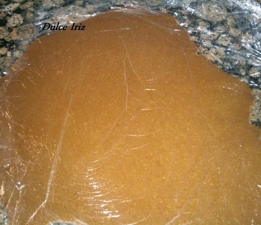 -Poner la masa entre dos trozos de papel film para estirarla con el rodillo y estirar hasta dejarla de un centímetro de grosor.