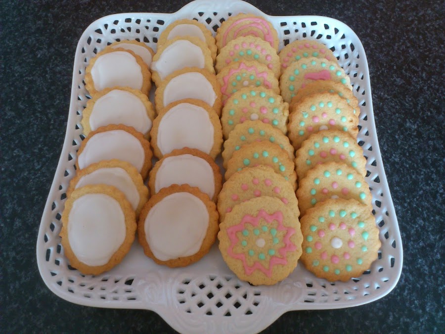Cuando ya estén frías las galletas podemos poner el glasé y decorarlas a nuestro gusto o imaginación. Yo no soy muy artista en esto de decorarlas, pero lo importante es que estén buenas.