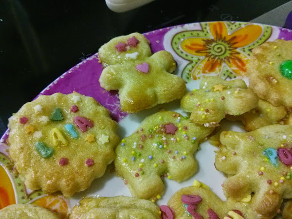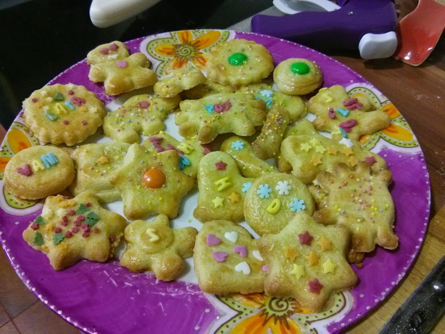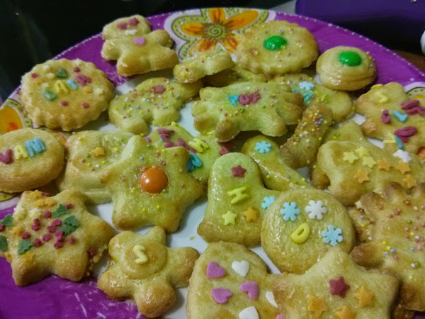 - Dejad la decoración a los niños, o simplemente pintar con la clara de huevo y espolvorear azucar.