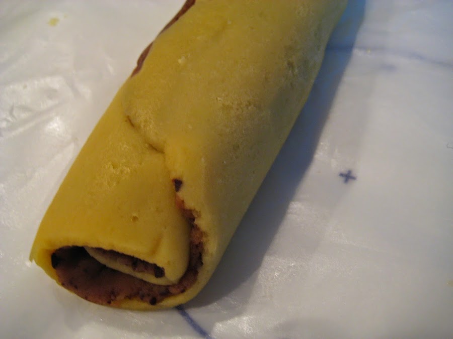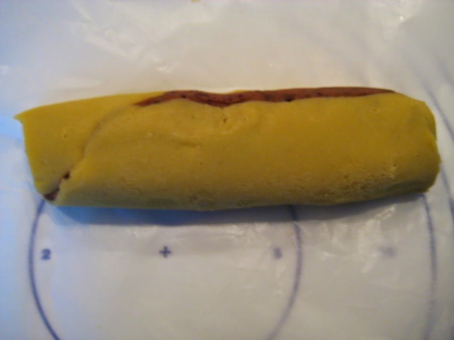 Si queremos hacer la forma en espiral poner una masa encima de la otra una vez estirada y enrollarla, meterlo en el congelador 5 min para que endurezca y después poder cortar con el cuchillo.