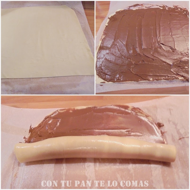 2. Untamos toda la lámina con nocilla y con un poco de cuidado la enrollamos.