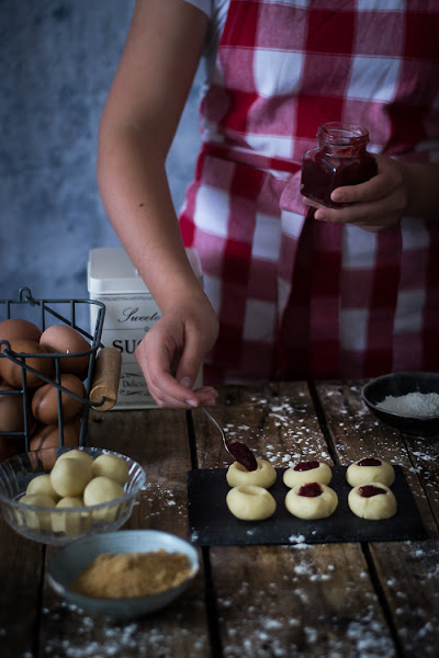 Todo empezó este verano, porque suelo dar clases de repostería en un colegio a un buen grupo de niños. Y pensando que podía hacer, me acordé estas Galletas de mermelada, porque además se hace el agujero con el dedo, ya que esa es la manera tradicional y de todos es sabido lo que le gusta a los niños meter las manos en la masa.
