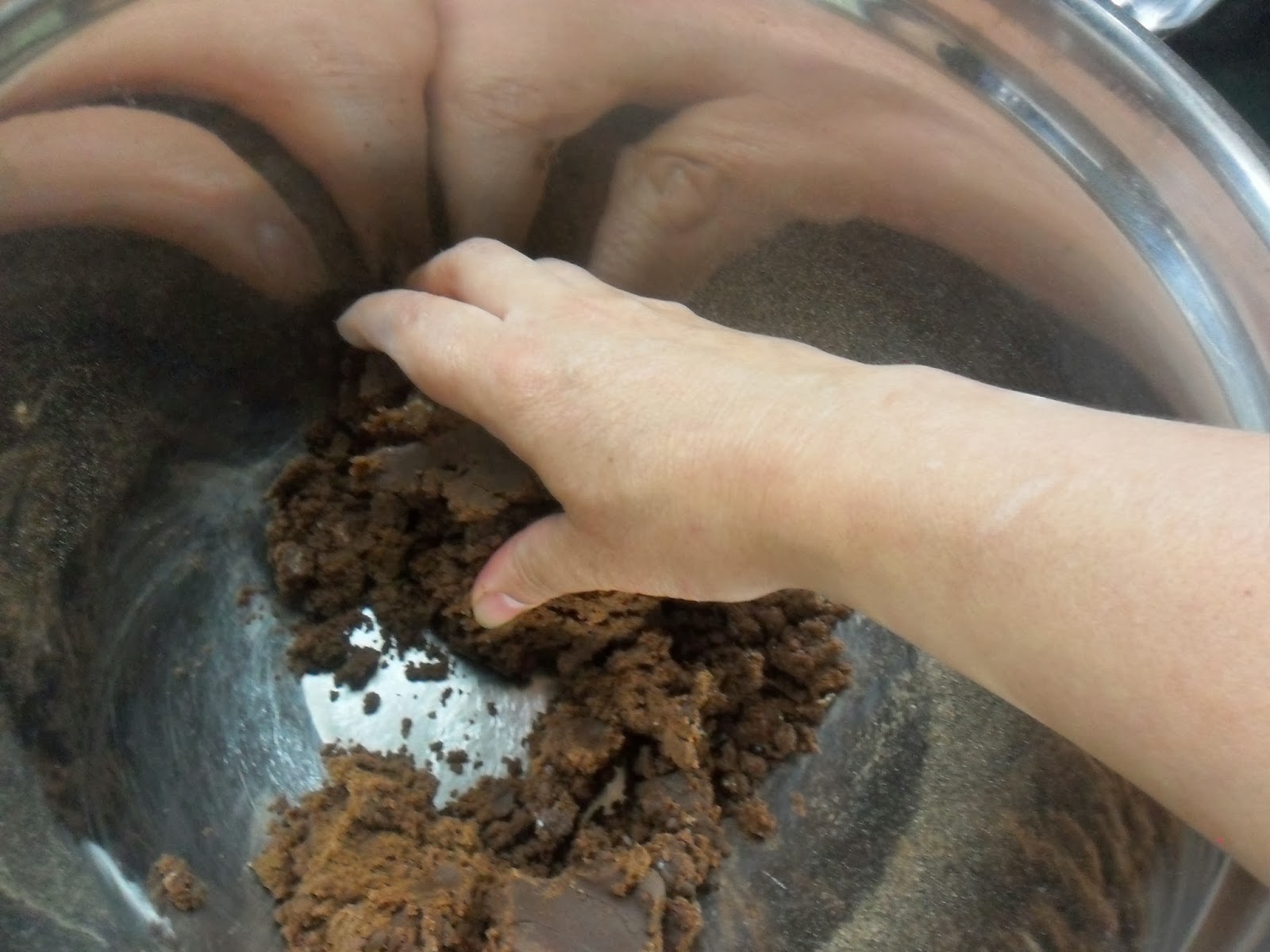 · Agregue la harina, la cocoa, el café y el polvo de hornear y la sal, previamente cernidos