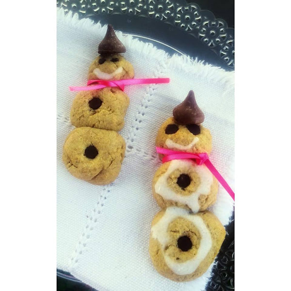 Así nosotros lo hicimos en casa con estas galletas: yo hice la masa y Raquel y su papá hacían las bolitas de distintos tamaños para luego formar los muñequitos de nieve. Pueden darle tanto color como quieran. Yo opté por chispas de chocolate, pero con los famosos m&ms se ven hermosos.