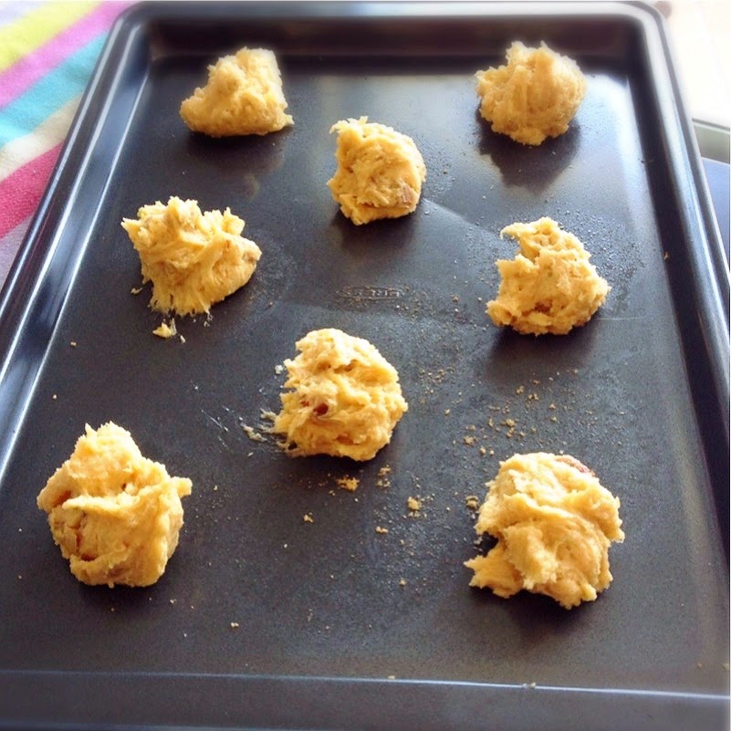 5. En una bandeja de horno colocar pequeñas cantidades de masa con la ayuda de una cuchara