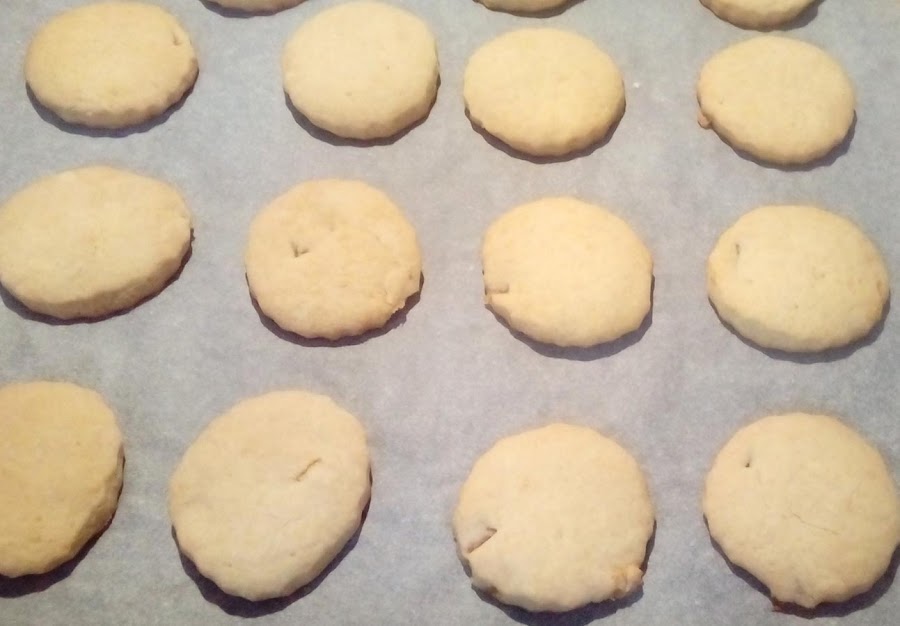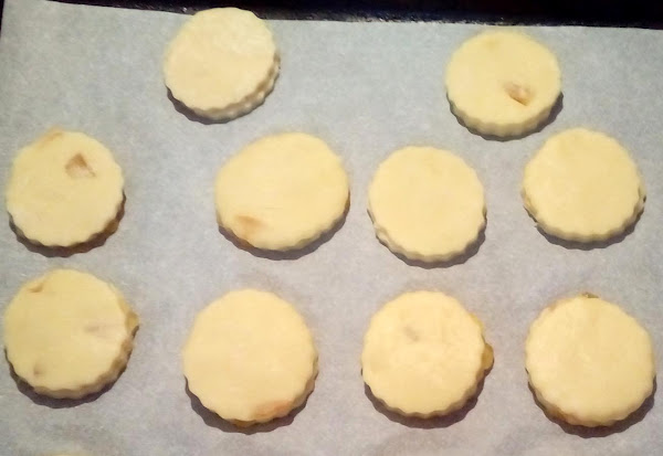 Se prepara una bandeja para horno con papel de horno, se estira la masa y con un corta pasta se da forma redonda.
