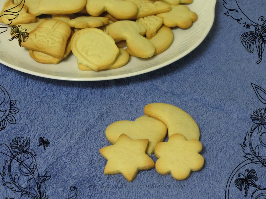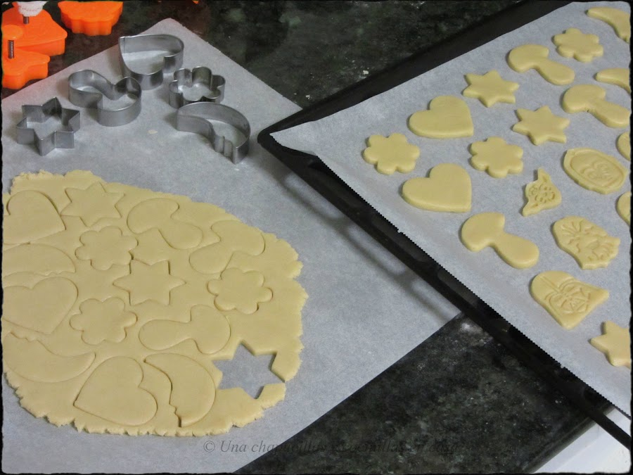 Con esa cantidad me salieron unas 48 galletas, pero usé moldes de diferentes tamaños como podréis ver en las fotos.