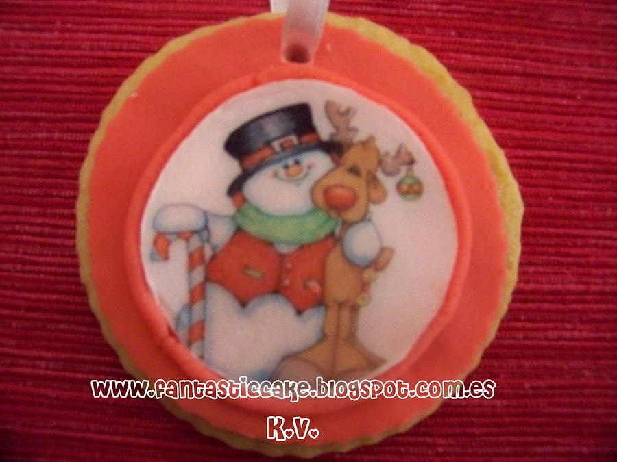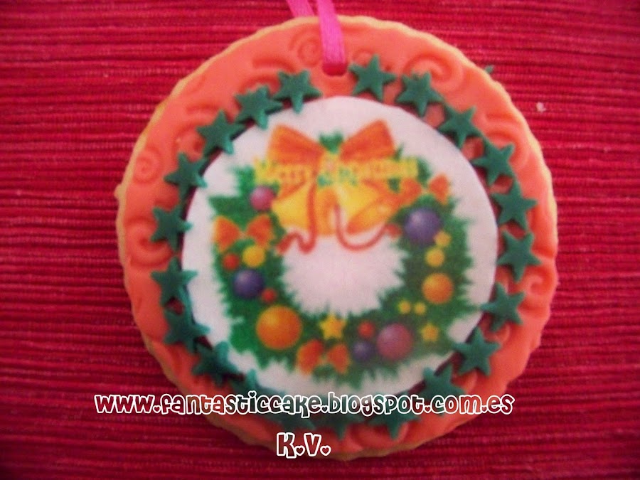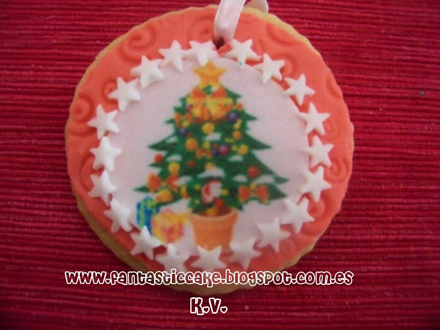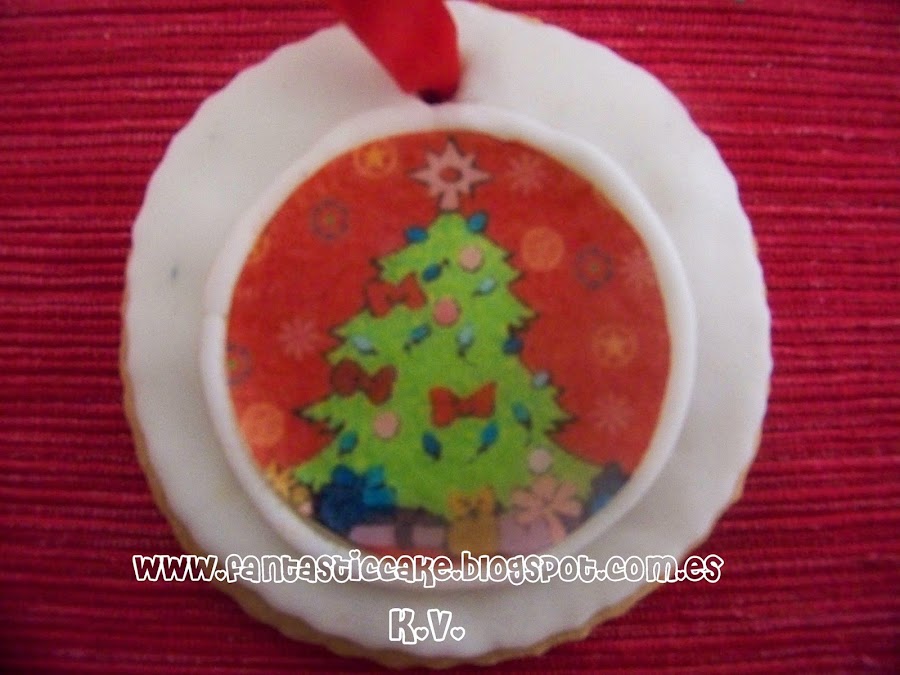 Son galletas de mantequilla (Receta Aquí) decoradas con fondant y papel comestible, además tienen una gran idea incluida por si os interesa. Las podemos utilizar para decorar nuestro árbol de navidad este año. ¿Qué os parece la idea?