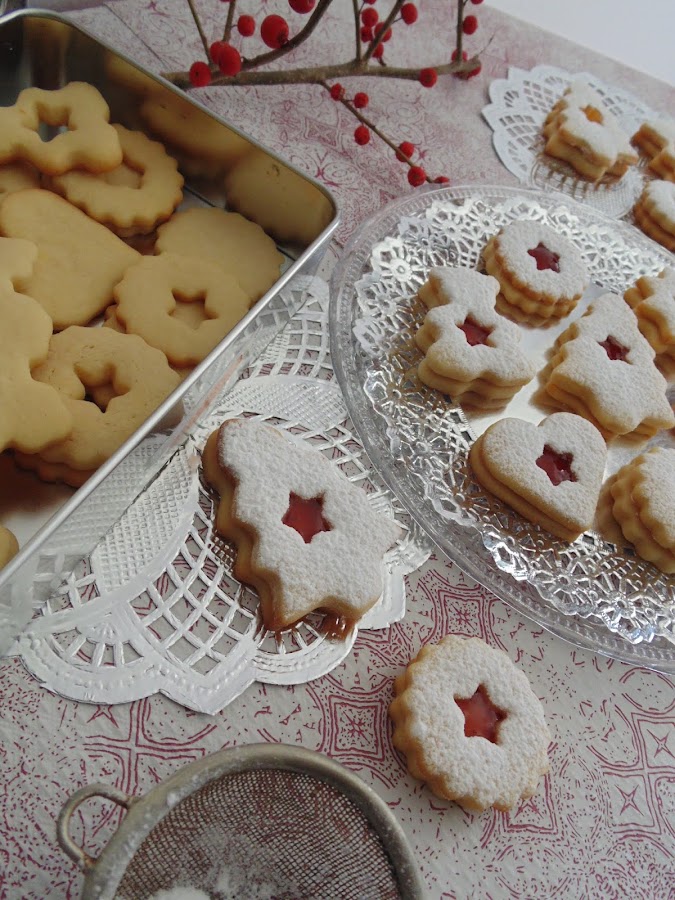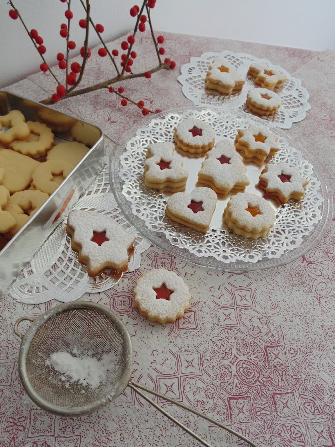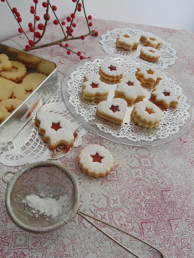 Hablando de nieve aprovecho para presentaros mi receta para el reto navideño de Instagram propuesto por Cocinando Sabores, #Oroinciensoydulcescaseros. Son las galletas de navidad de origen centroeuropeo y del tirol italiano, Spitzbuben. Están rellenas de mermelada y espolvoreadas con azúcar glass, nuestra nieve particular en estas fechas. No las había elaborado nunca y la masa es de pastaflora. Se deshacen en la boca, repetiréis una y otra vez. Asegurado! Pasemos a la receta!
