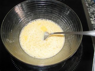 Abrir la vaina de vainilla y sacar las semillas y mezclarlas con el huevo batido