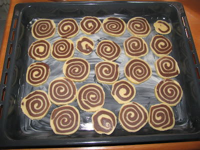 Yo os aconsejo meterlo en el congelador por que luego se cortan mejor los discos que debemos hacer.Una vez cortados las galletas las disponemos en la bandeja del horno con un poco de mantequilla o con papel para horno.