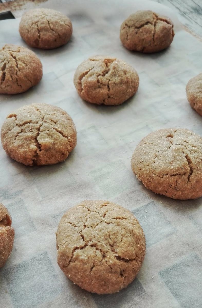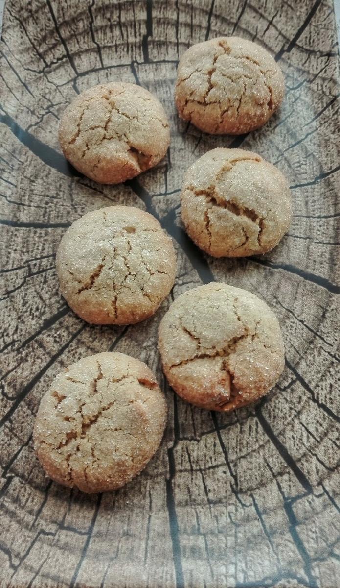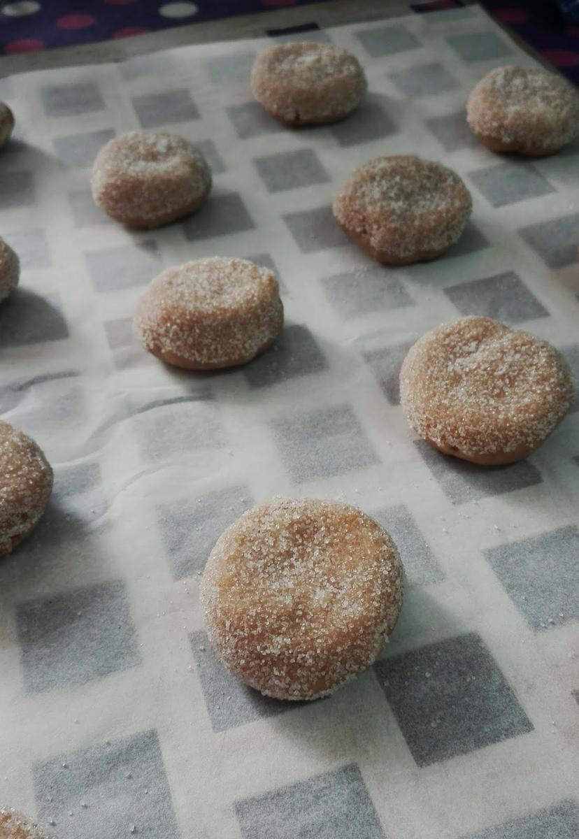 Vamos tomando porciones de masa, redondeamos entre las manos haciendo una bola de masa y aplastamos ligeramente sobre el azúcar que tenemos en el plato.