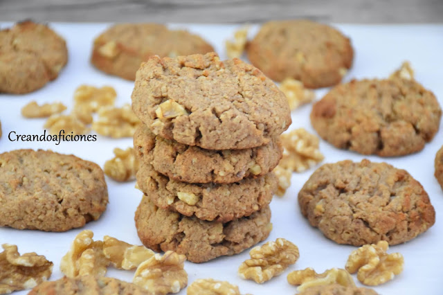 Seguimos preparando más galletas ricas, saludables, sin azúcar, con frutos secos y hoy las hacemos de nueces. Con estas cantidades salen unas 15 galletas . Empezamos.