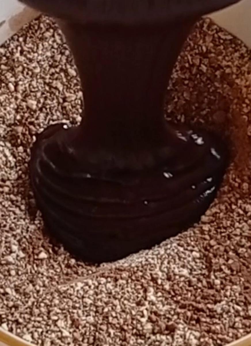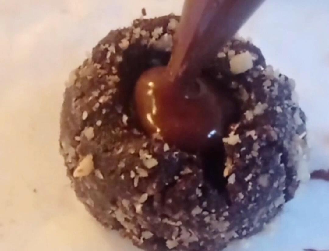 3-Rellenar con la salsa toffee,y cubrir la parte del hueco con chocolate derretido.