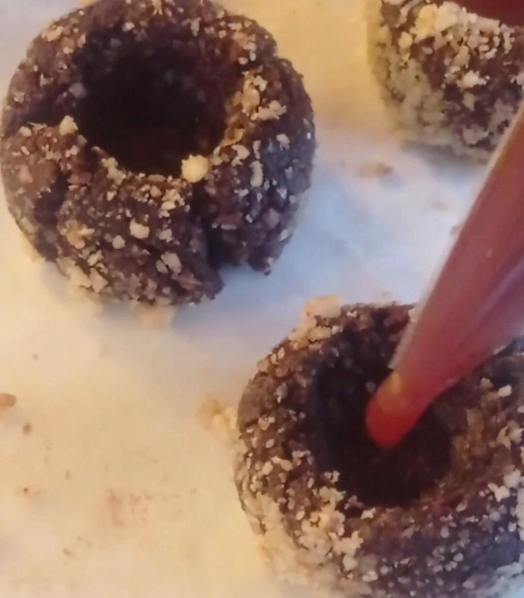 2-Formar bolitas y hacer un hueco en el medio para rellenar.