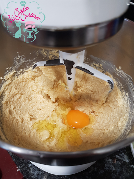 Añadimos el huevo y la vainilla, batimos a alta velocidad parando para raspar las paredes del bol y seguimos batiendo hasta que este todo integrado.