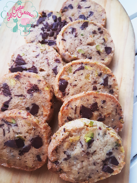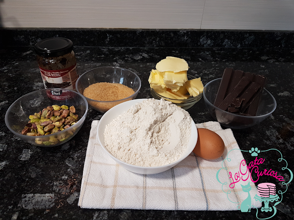 Los pistachos que hemos usado son sin sal, ahora mismo no recuerdo bien si son de Lidl o de Mercadona, hay que pelarlos y partirlos en trocitos.