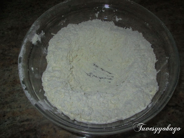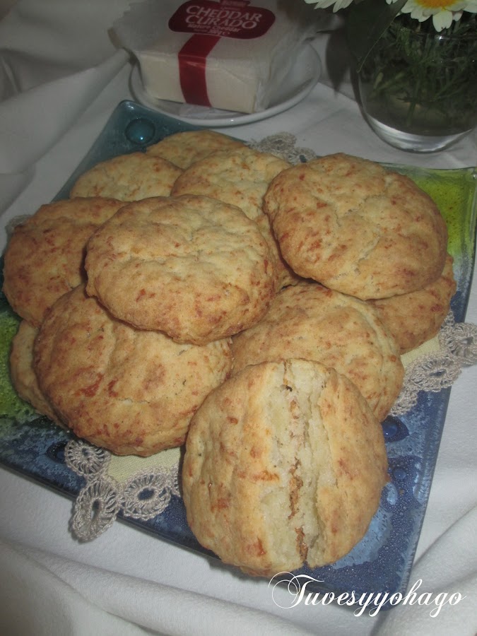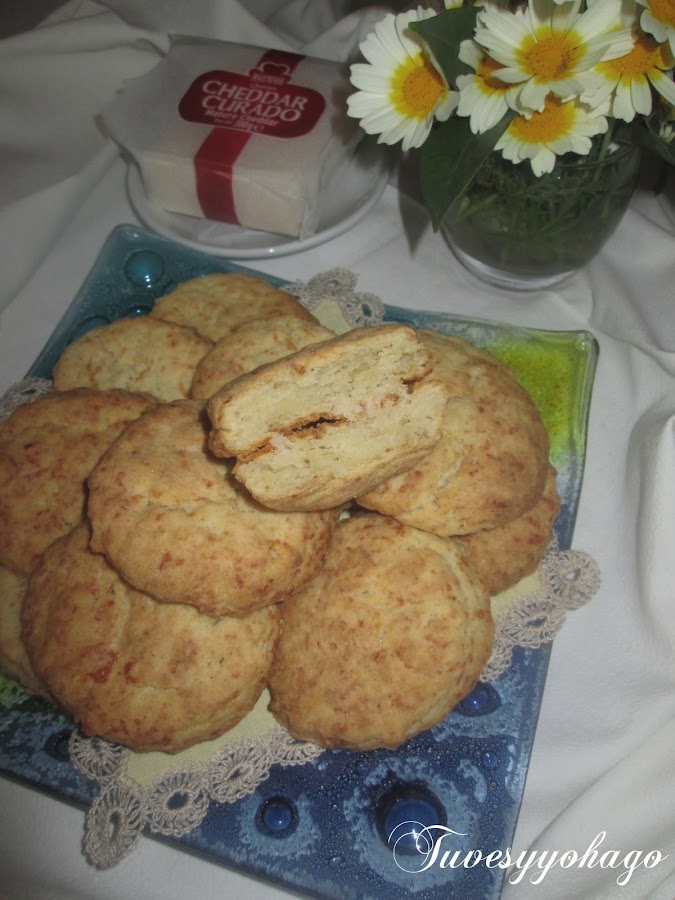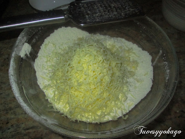 2. Tamizar la harina con la levadura en un cuenco grande, agregar la sal y pimienta a gusto y luego añadir el queso cheddar rallado. Mezclar bien con un tenedor.