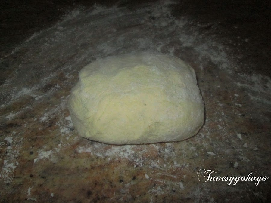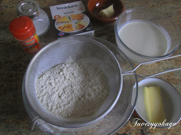 4. Espolvorear la encimera con un poco de harina y verter sobre ella la masa. Amasarla unos segundos, con mucho cuidado. No trabajarla demasiado porque si no las galletas no subirán y quedarán duras.