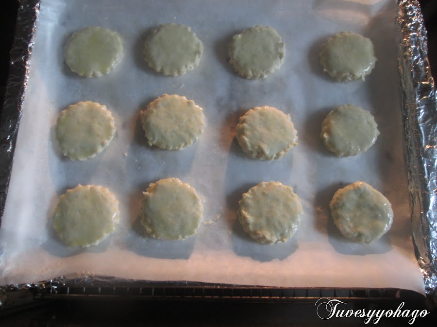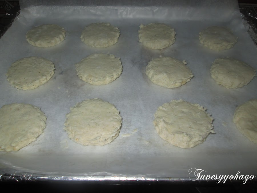 6. Colocar los círculos en la bandeja de horno dejando 2 cm como mínimo de separación entre las galletas porque aumentarán de tamaño al hornearse.