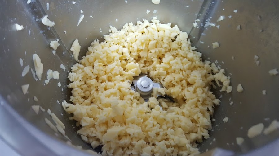 2.- Cortamos el queso a tacos y lo ponemos en el vaso de la thermomix.