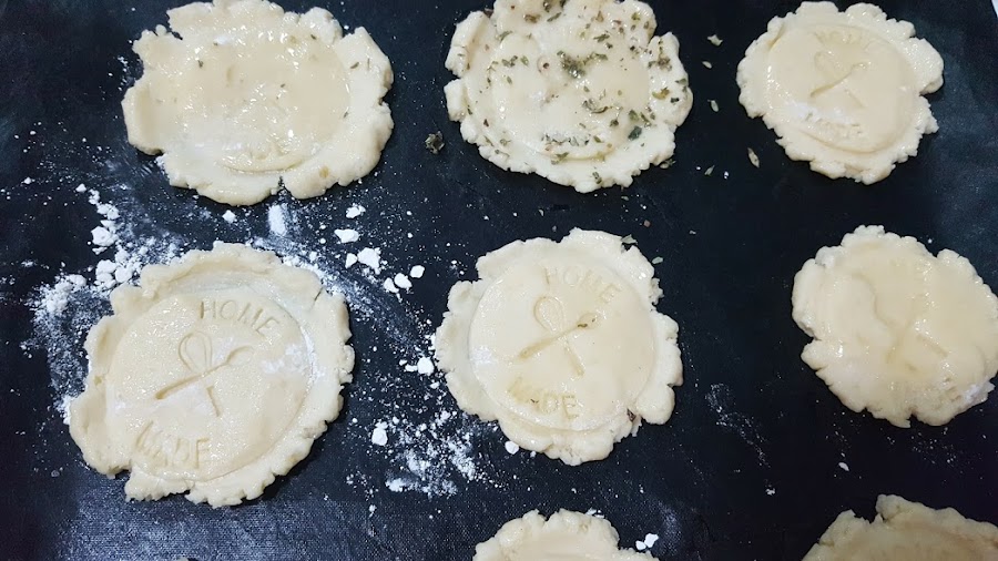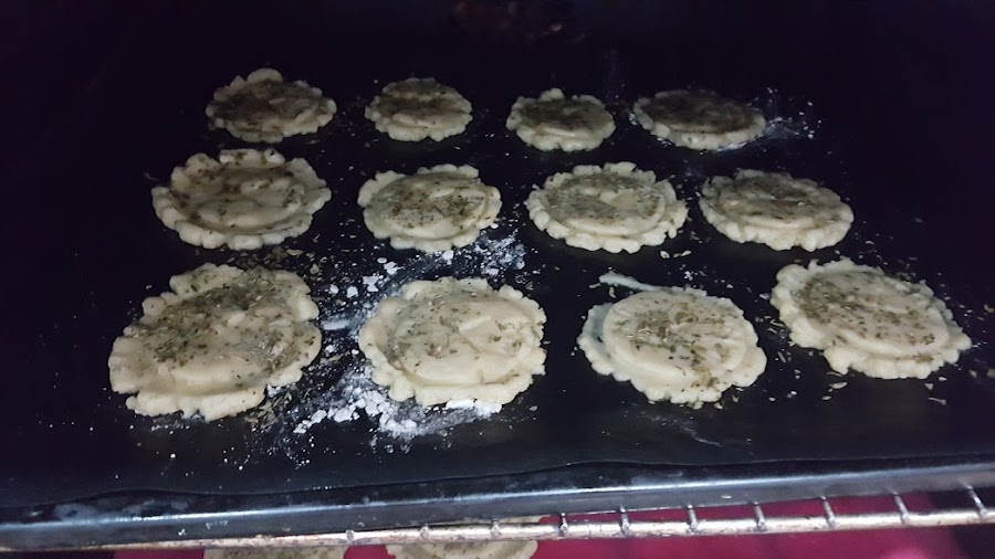 6.- Pintamos con aceite las galletas y espolvoreamos con orégano.