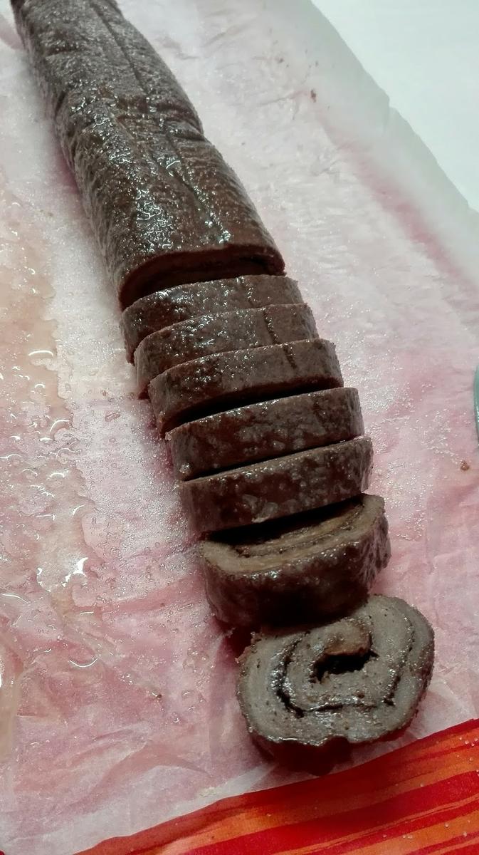 Sacamos, espolvoreamos con abundante azúcar y enrollamos sobre si misma formando un cilindro.