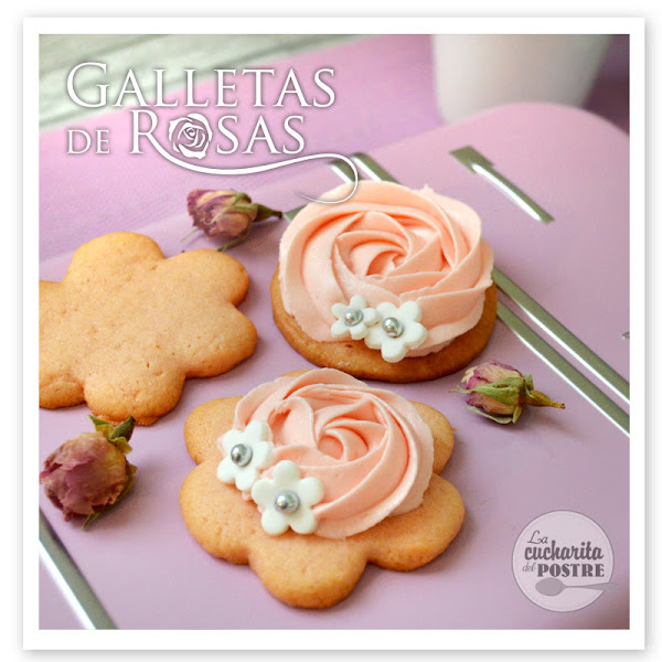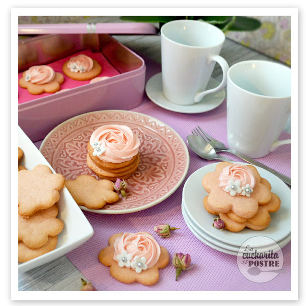Y aquí tienes estas galletas de rosas delicadas, elegantes, incluso cursis me atrevería a decir, pero que están riquísimas y además quedan muy monas.