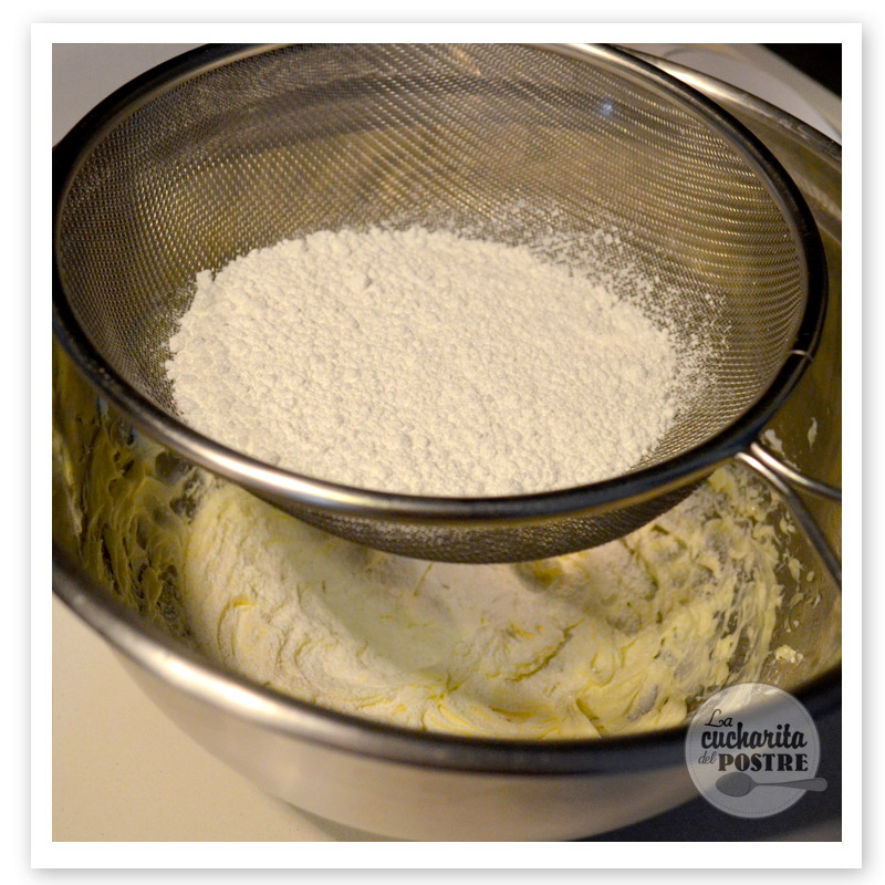 2. Tamiza el azúcar glasé por encima y sigue batiendo hasta que esté bien integrado.