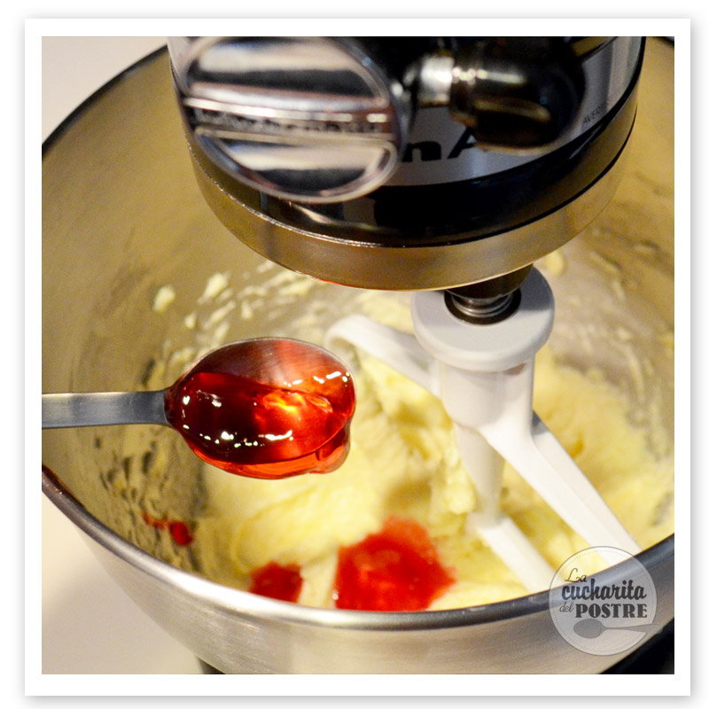 3. Por último, añade la cucharada de pasta de rosas y bate de nuevo.