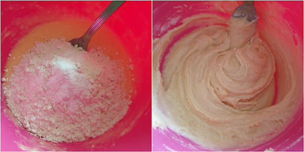 2. - Le añadimos la harina junto con la levadura y volvemos a mezclar.
