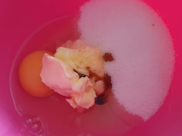 1. - Encendemos el horno a 170º y en un bol ponemos la mantequilla, el huevo, el azúcar, las gotas de vainilla y la pizca de sal, y mezclamos todo bien hasta que quede una crema .