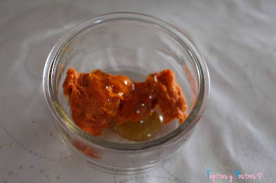 Mientras se enfrían las galletas, vamos a poner los restantes 50 gr de sobrasada con la miel y calentamos unos 20 segundos en el microondas.