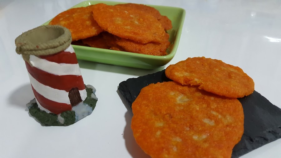 Me estoy aficionando a hacer galletas saladas. Las de cheddar salieron tan bien, que me estoy arriesgando a ir complicándolas con otros ingredientes. Esta vez, para mimar a los consentidos de la casa, las hice con sobrasada. Y también han salido muy buenas. Las próximas de queso azul, ya os voy contando.