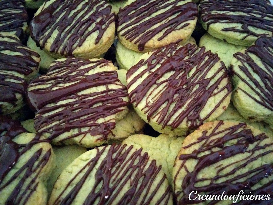 Dejamos enfriar y si queréis poner chocolate por encima, calienta unos 50 gr de chocolate con una cucharadita de mantequilla, unos segundos en el microondas sin que se queme y con una cuchara lo echamos por encima de las galletas.Que disfrutéis!!!!!!!!!!!!!!!!!!!!!!!!!!!!!!!!!!