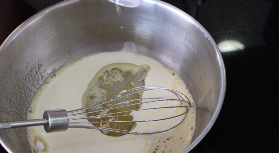 1. Romper el huevo con un tenedor. Agrega azúcar, sal y vainilla. Batir ligeramente. Agregue la crema agria y la mantequilla. Mezcla