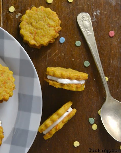 Ya ultimo domingo de mes y eso significa que ¡Hoy toca la receta del Asaltablogs! En este caso el blog asaltado es Gallecookies que, como podréis adivinar por el nombre, es en su mayoría dulce.¡Claro, así cualquiera se queda SOLO con una receta!Tras rebuscar un poco entre sus recetukis me enamore a primera vista de sus galletas de zanahoria ¡Que buena pinta tenían! Así que me lié la manta a la cabeza y, ademas de hacer las galletas, las rellene de crema de queso ¡Un autentico manjar! Coged papel y boli que os cuento la receta