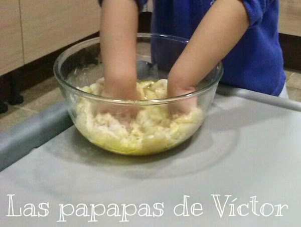 Mezclar todos los ingredientes con las manos, a mi peque le encanta eso de manipular