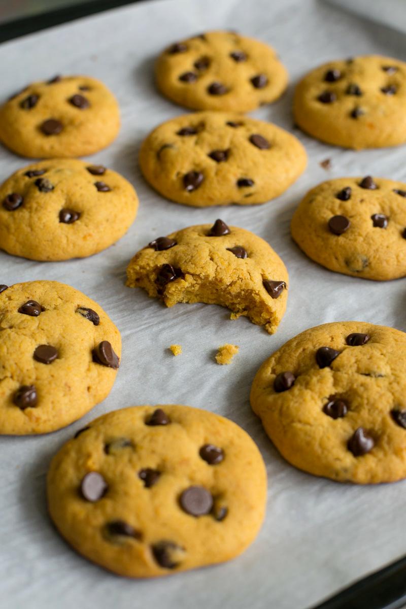 Volviendo a estas galletas, ¿como se me ocurrió la idea de ponerle zapallo (calabaza) a unas galletas? Tenía un trozo grande de zapallo y mucho antojo dulce, así que me metí a Pinterest y empecé a buscar inspiración, y ahí encontré una receta de galletas con zapallo que me llamaron mucho la atención, entonces decidí adaptarla (cambiando un poco las cantidades y algunos ingredientes) y nacieron estas maravillosas, esponjosas y sabrosas galletas de zapallo con chips de chocolate que son toda una adicción (ya las he hecho varias veces).