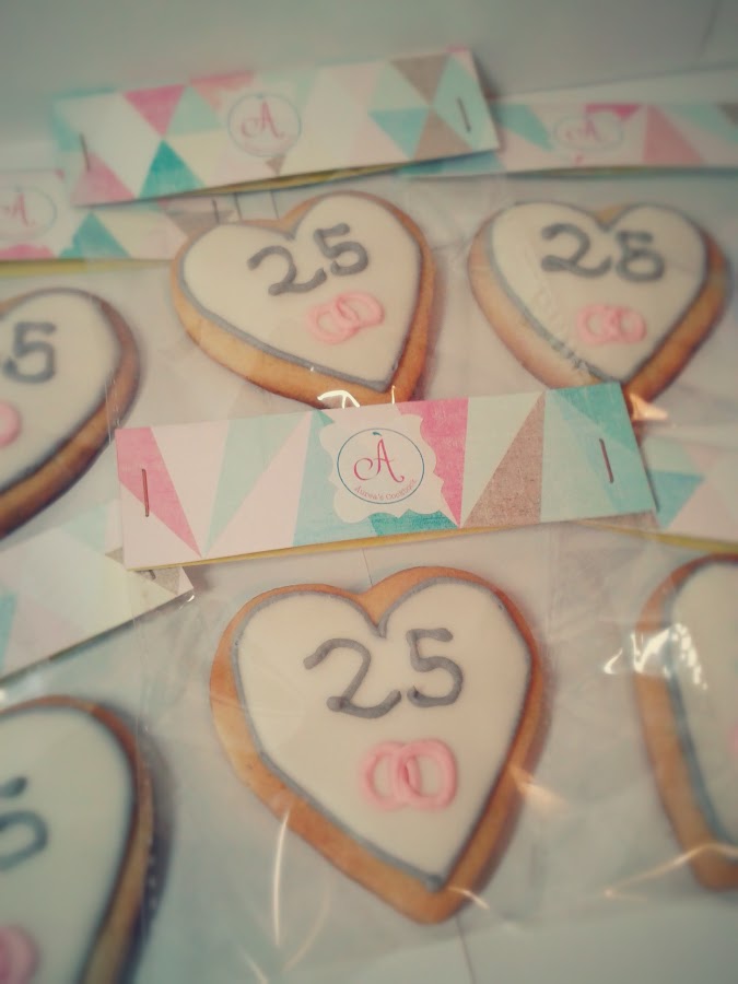 Son unas galletas de vainilla, decoradas con glasa real o royal icing, con mucha paciencia y tiempo, luego están embolsadas con mi sello personal.