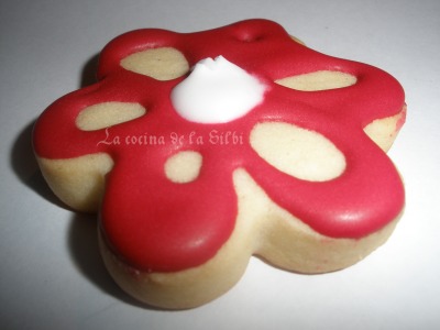 Con estos colores perfilais las galletas con una manga con boquiilla fina o sino cortando la puntita de la manga muy poquito. Yo tuve el problema de que las mangas desechables que compre traian para ponerle boquilla y el agujero enorme asi que probé en una galleta y me quedó fatal, asi que decidí hacerlas sin conternear, y la verdad que tampoco me disgustó el resultado.