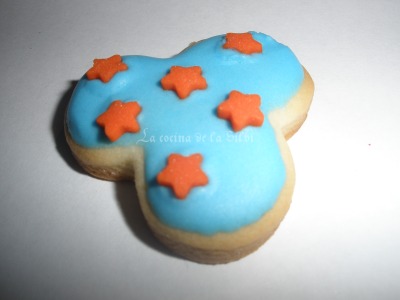 Hace un par de semanas, nos juntamos Helena (El capricho de Helena), Pilar (Un par en la cocina) y yo para aprender hacer este tipo de galletas, que quedan tan divinas de la muerte, y estan tan buenas. Lo de aprender lo digo por Helena y por mi, ya que la maestra ingeniera era Pili. Alli estuvimos y entre masas, cortadores de pasta, glasa , charlas y muchas risas pasamos un rato muy divertido y encuanto consegui los colores primarios para teñir la glasa, lo puse en practica una semana despúes. Son unas galletas que cuesta bastante trabajo de hacer, por lo cual lo ideal seria diponer de muuuuuucho tiempo y sobre todo paciencia.