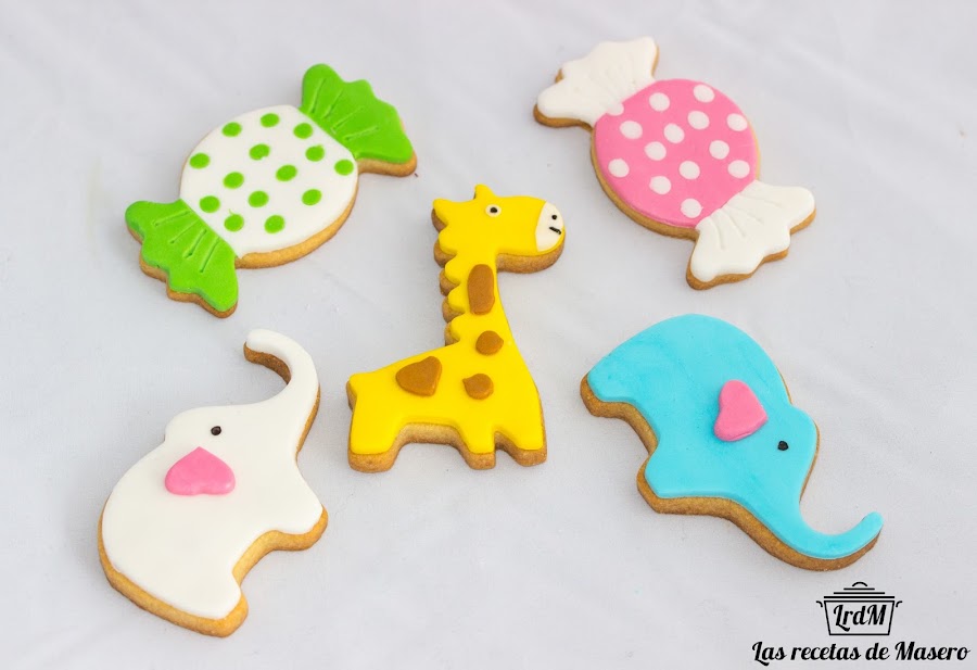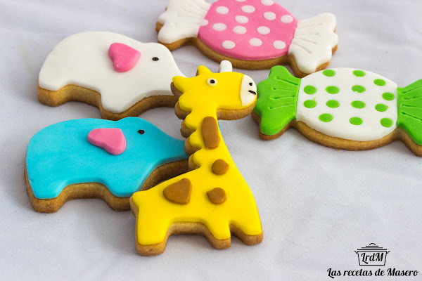 La receta que he usado para la masa es la que me dieron en el curso de galletas de Jessica cakes, que desde que la descubrí, siempre hago la misma. El fondant que he usado es de la marca Funcakes y el del Aldi de sabor coco, siempre lo compro blanco y los tiño con colorantes en gel. Los detalles de ojos y nariz están hechos con rotulador negro comestible. Los cortadores que he usado los compré por Aliexpress muy baratitos y muy monos.