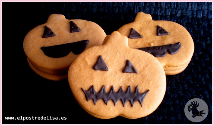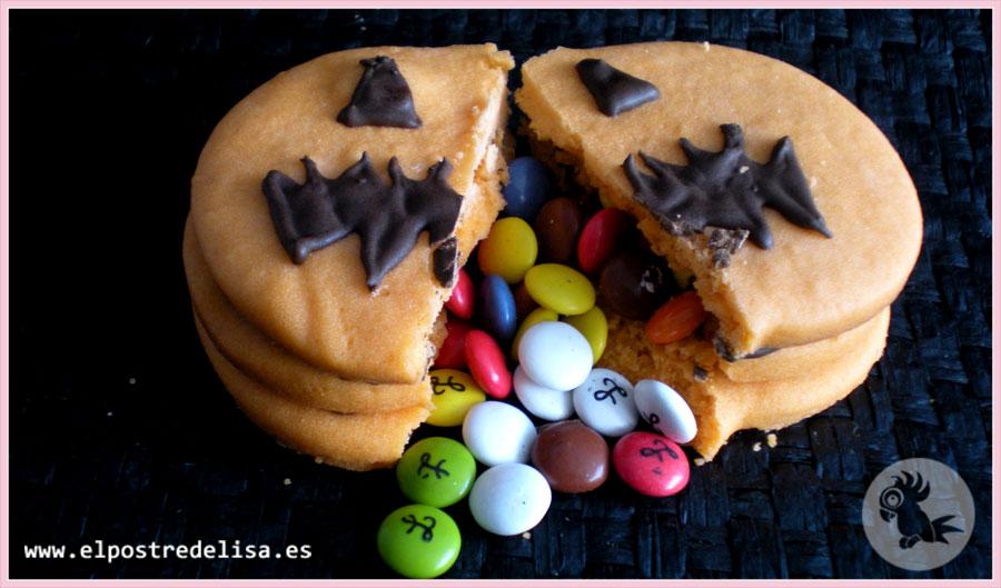 Y es que se trata de galletas de mantequilla, con la masa tintada con colorante de naranja y decorada con glasa en color marrón chocolate y otras veces lo hago directamente con chocolate derretido. Es una triple galleta de mantequilla, rellena de lacasitosA los niños les va a encantar y encima se llevarán una sorpresa cuando la empiecen a comer. Y a los adultos también!!