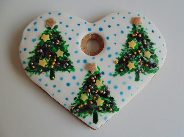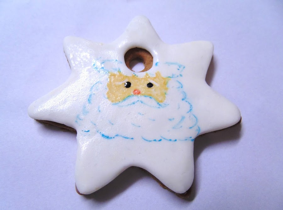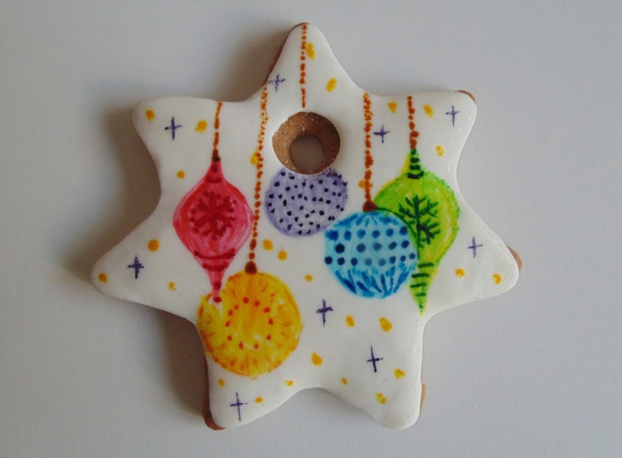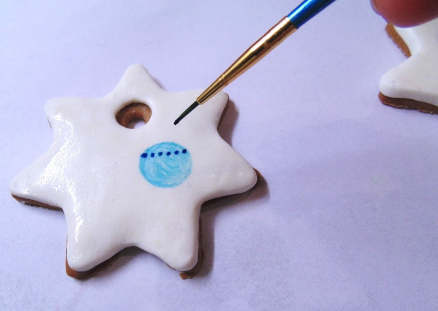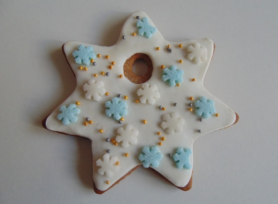 Con un poco más de pegamento comestible enganchamos copos de nieve y bolitas brillantes de azúcar... nivel superfácil.